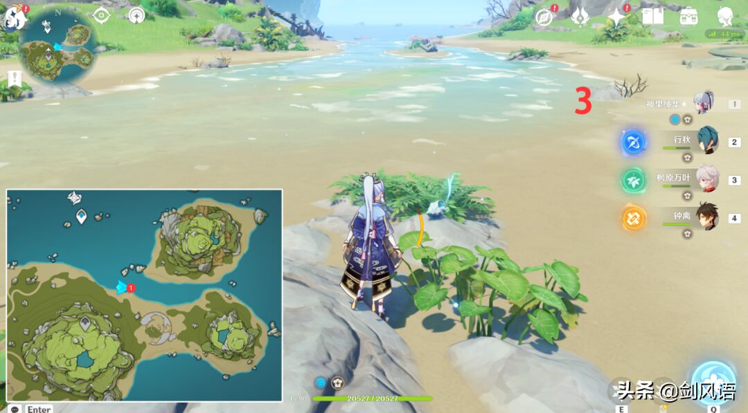 6.在山顶上,从传送点出爬上来,带万叶/温迪,更方便。
