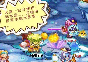 2、需要六个人同时站在冰面上,启动冰晶,使用星落术一起砸向水晶,就会获得格格阿布蛋(每人每天一个)。