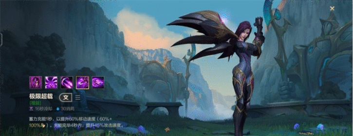 卡莎的E(3)技能:极限超载,卡莎暂时提升1秒的60%+100%AD攻速的移动速度,随后提升45%攻击速度。活体武器:这个技能得到升级,可短暂提供隐形效果,65%攻速。这个技能是卡莎高机动性的体现。这个技能的多数运用是追人时开,因为技能在加载(提升移速)的时候是不能够平A的,所以这个技能最好打架前就开启,保证打架时的输出最大化没有平A间隔;有一个技巧是施放E(3)技能时,可以施放Q(1)技能,来弥补没法平A的时的输出间隔。
