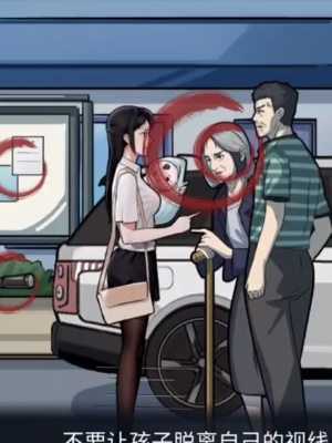 3、图中吵架中有许多线索(老人的头发是假发,草丛里有望远镜,告示栏上贴着寻子启示,车窗上有血迹)。之后那个男子和假扮的老人抢走女人的孩子。