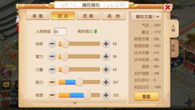 普陀作为一个辅助门派,对于速度的要求很高。他的速度一定要比输出门派快, 才可以达到一个先手buff的效果。