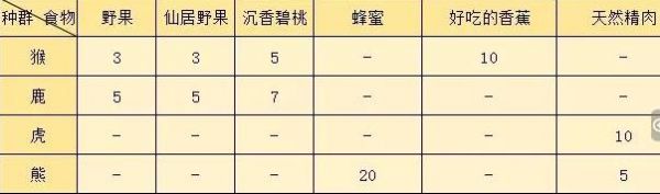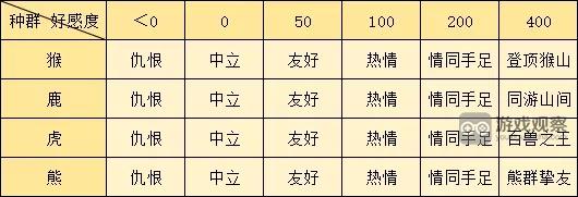 2、目前仙居原共有猴、鹿、虎、熊4种种群,我们可以通过投喂喜欢的食物来提高好感度。