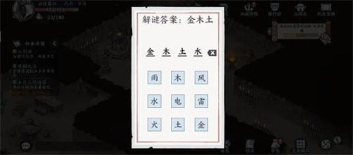 3、触发隐藏谜题金木土,在下列字中选择水。