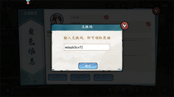 3、将自己获得的兑换码输入进去,然后点击兑换码输入框下方的【确定】按钮;