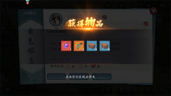 4、如果玩家输入的兑换码没有过期,且大小写正确,就会弹出获得物品的提示,点击空白区域后消失。