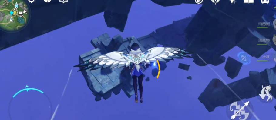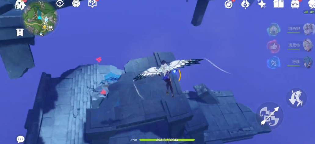 2、拿完第一个宝箱后使用两次传送,然后向左转,飞到下图所示的位置然后顺着路往前走,使用弓箭手来完成挑战,获得精致的宝箱。