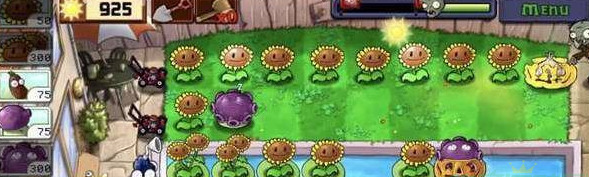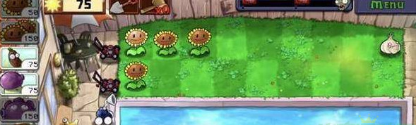 1、沿着底线及1、6路种向日葵,并在1-9及6-9种植大蒜。前三只僵尸均用土豆解决。