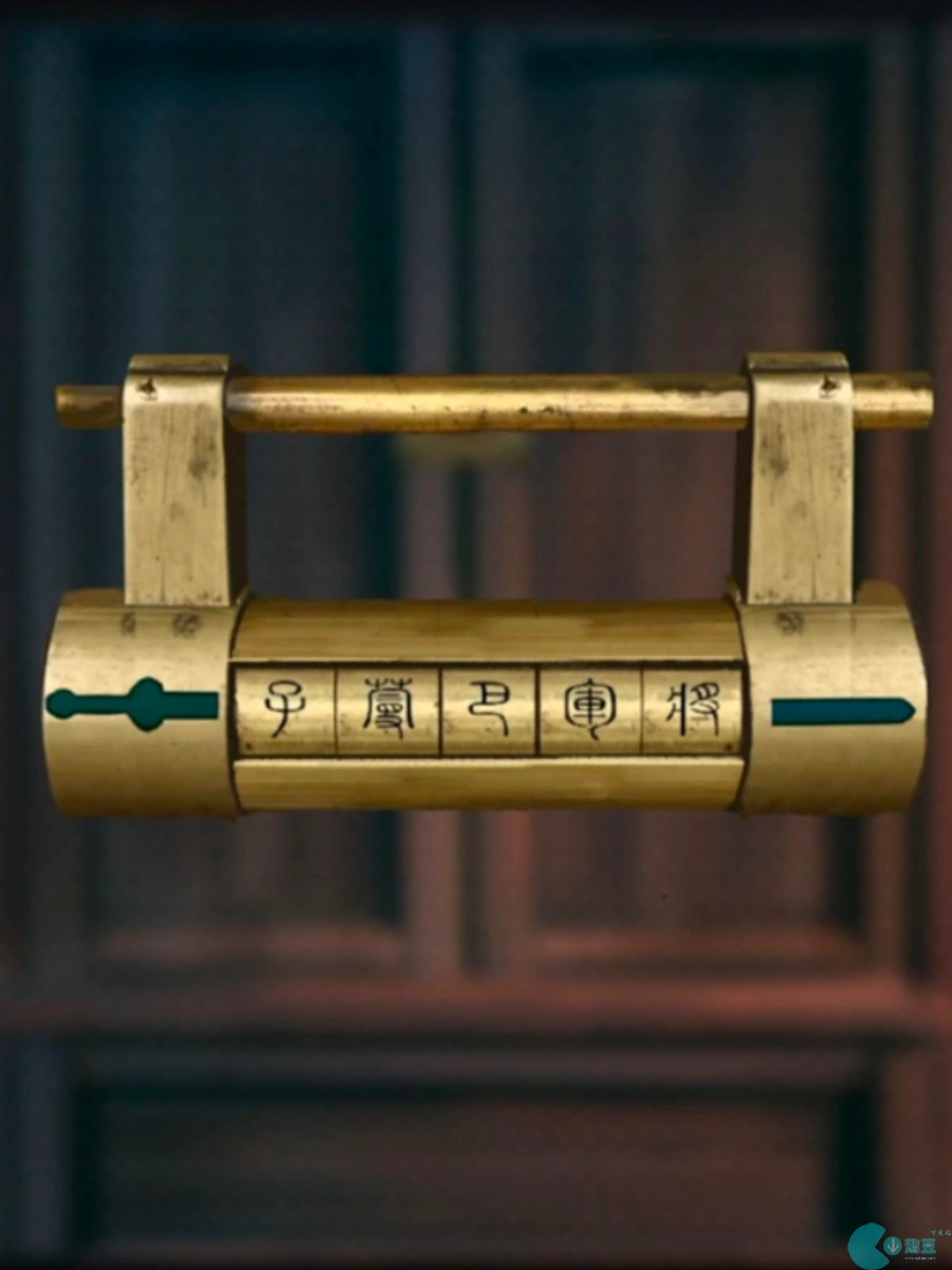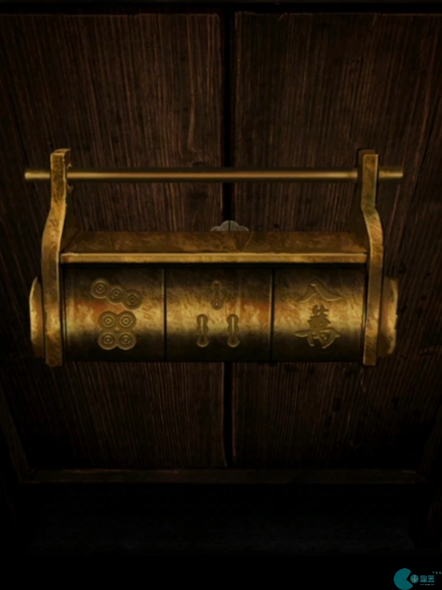 7、进入右边小房间,把玉佩放进食盒里,根据地下室线索完成小游戏,用毛笔蘸取金漆得到【金漆毛笔】。