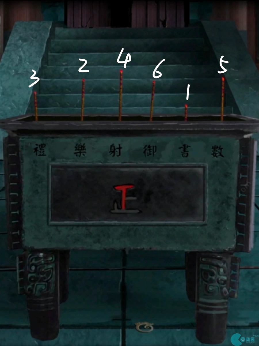 6、进入地下室,根据线索点击墙上砖块得到【石剑】,把水倒进锅里,把纸钱和火符放进洞里,放入两张剪纸和猪图纸得到线索。在院子里把香插在鼎里,按顺序用火柴点燃得到【玉佩】。