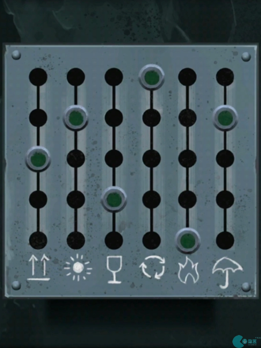 5、用钥匙打开右边电箱,用手套调整电箱,打开路灯。在巷子尽头走,找到滑块1、滑块2、石块1和石块2,把石块放在右边的石堆里,完成调整,观察里面图案位置高低。