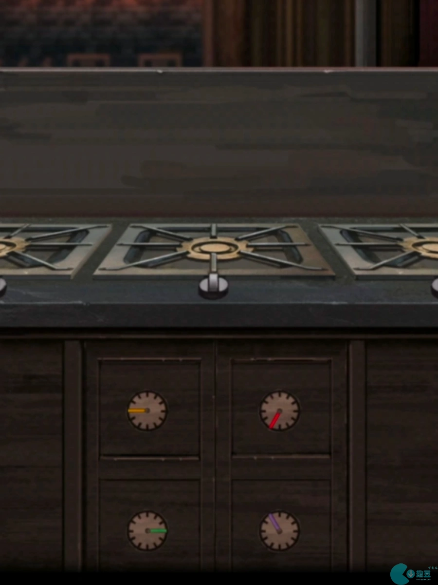 8、在灶台上烧开水,完成倒水小游戏,打开幕布得到物品和线索。
