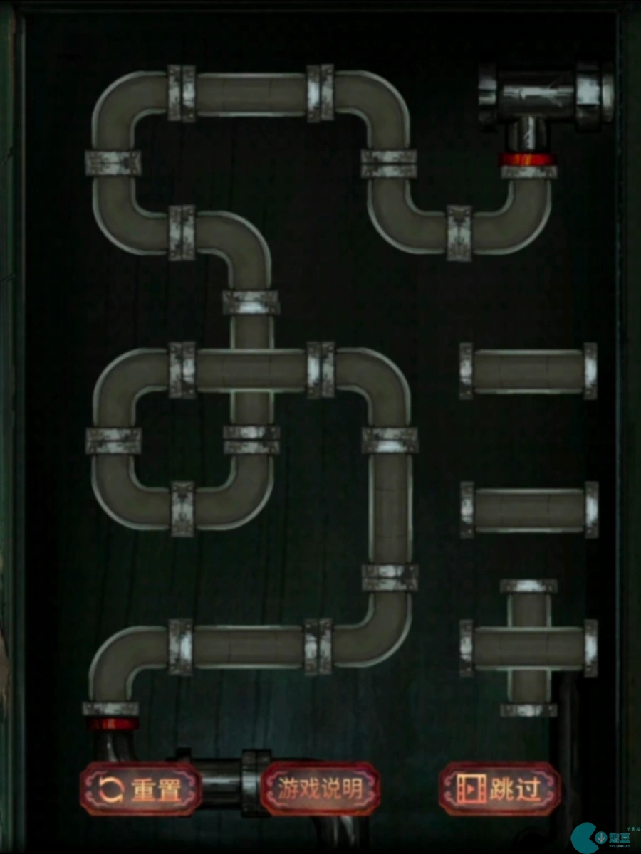 8、查看右前方墙上的线索,打开左边的柜子,获得空酒瓶。出门后用扳手调整门右边的水箱,打开水龙头用空酒瓶接水。