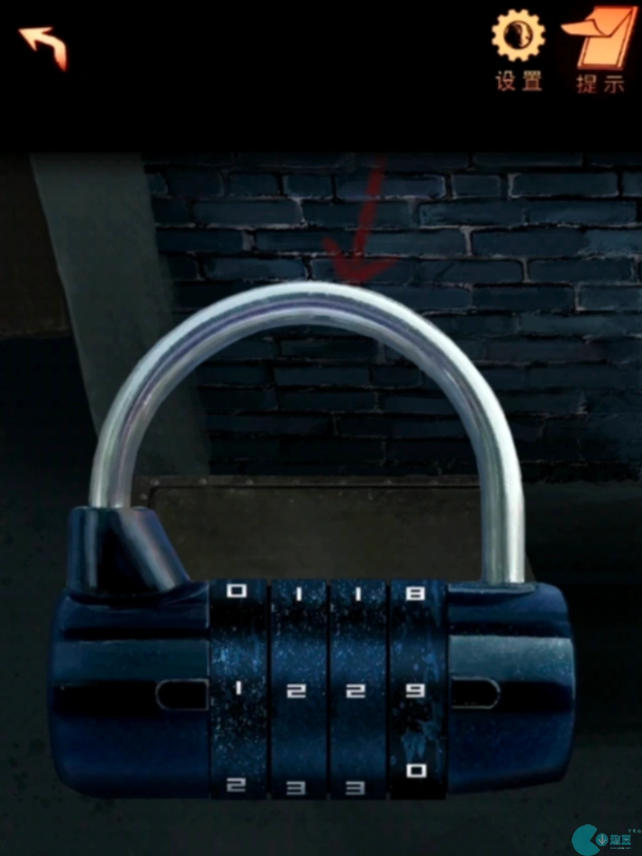 9、在院子里,用铲刀铲掉右边花架上盆栽的青苔,用钳子打开前方红光处的大门,根据线索打开前方钟下的柜子,获得插头。