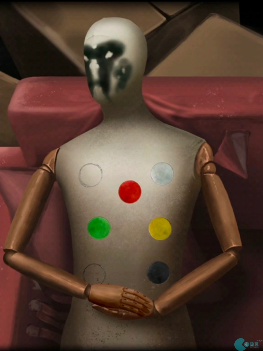 8、用螺丝刀打开柜子上的盒子和右边小柜子上的铁罐,获得黄色圆块和红色圆块,把两个圆块放到中间的模特身上,根据书本提示调整圆块,获得喜字滑块,把滑块放到桌上的盒子上,根据提示调整盒子,获得钥匙,用钥匙打开右边小柜子,获得钳子。