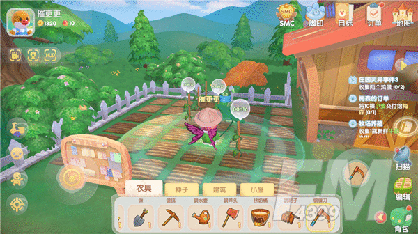 1、水壶和耙子可以在泥瓦匠小屋升级后通过长按来使用。农具等级越高,蓄力所耕地的农田格子越多。在积累力量时,玩家会做出相应的动作。