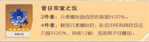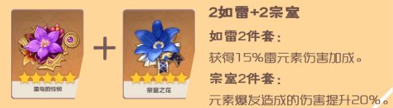 很适合九条裟罗的辅助套装,两件套可以增加元素爆发伤害,四件套能够增加全队攻击。