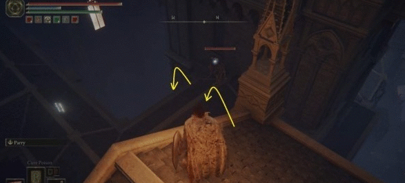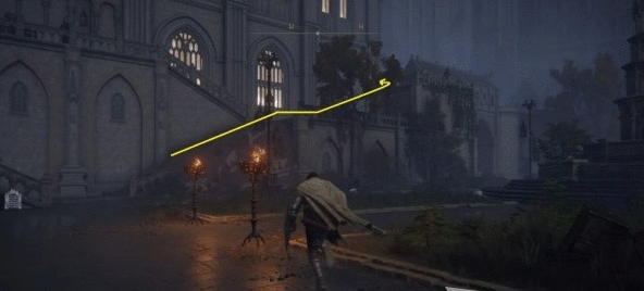 4、来到如图所示的楼梯跳下去,走到最前面左拐。