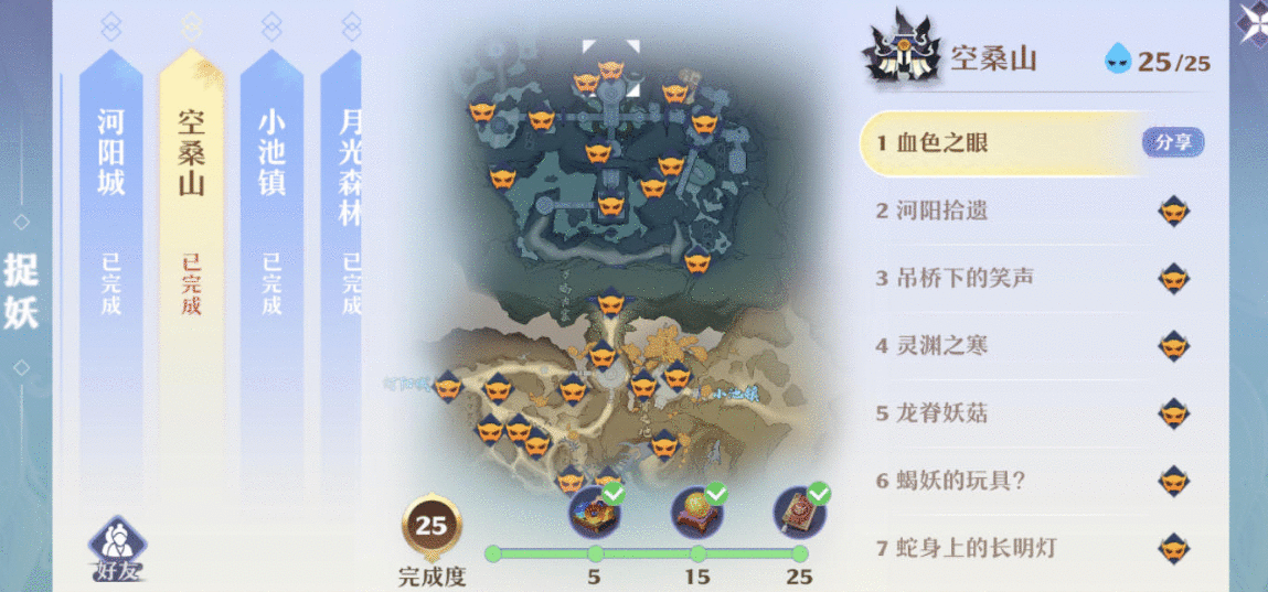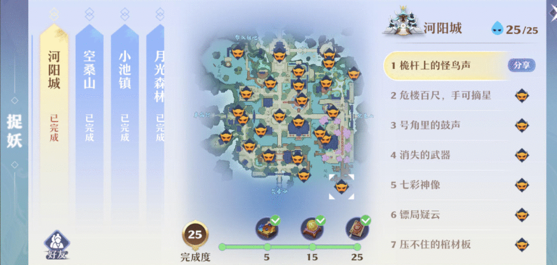 3、河阳城的探灵位置比较集中,地图较小很快就可以找齐。