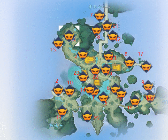 2、青云山的探灵位置如下图所示,左右分布比较平均。