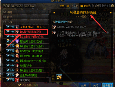 1、首先我们需要在外传任务中找到风暴逆鳞任务,完成该任务才可以去。
