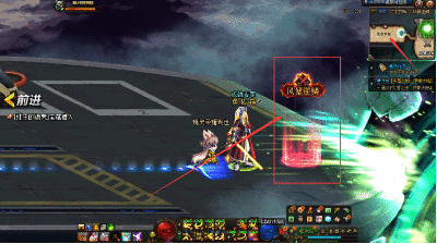 4、进入后我们向右走,在如图所示的位置可以选择风暴逆鳞地下城副本。