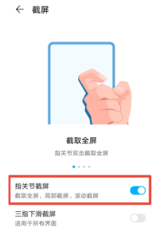 4、将指关节截屏打开,这样我们就可以用指关节轻敲手机来完成截屏了。