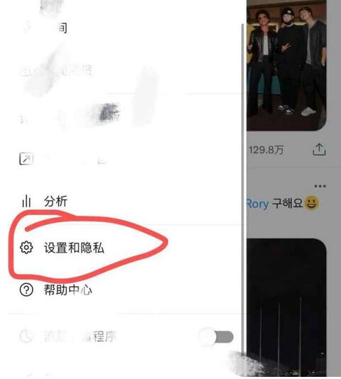 2、在弹出的个人中心界面中找到“设置和隐私”,并点击进入隐私设置页面。