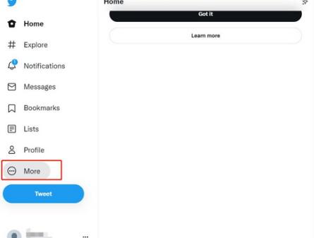 1、首先打开推特网页版登录入口 ( https://www.twitter.com/ ),登录账号后,在主界面左侧菜单栏,点击“更多 More”。
