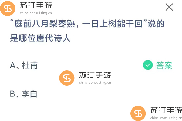 2、“庭前八月梨枣熟,一日上树能千回”说的是哪位唐代诗人