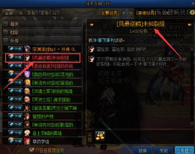 1、在外传任务中,找到并完成风暴逆鳞任务。