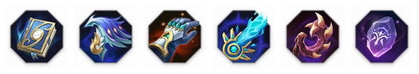 出装一:镜光法典+风暴之翼+迷雾铃+恶念+法老诅咒+碧蓝怒火
