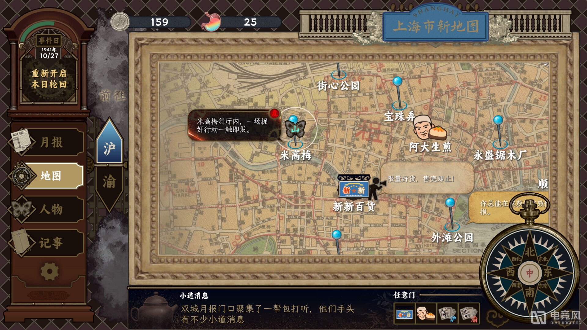 实景拍摄的场景参考,散落在故纸堆里《大公报》,早已绝版的影印书。只为还原一个你不知道的1940。游戏内,大量情报隐藏在报纸、地图和调查报告等功能里。每一条蛛丝马迹,都可能会改变当局者的命运。