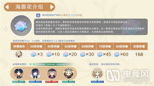 海露花,枫丹区域特产,主要用于角色等级突破,目前是菲米尼的角色等级突破的刚需材料。