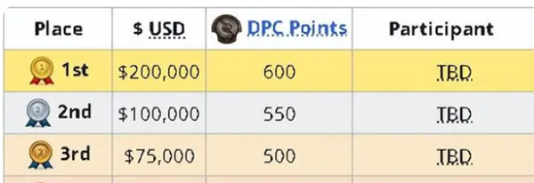 dota2巴厘岛major第一名积分600 DPC积分,比赛的赛制也是相当的有意思根据战队之中所获得的积分来进行排名,第七百八名的排名就是300积分。