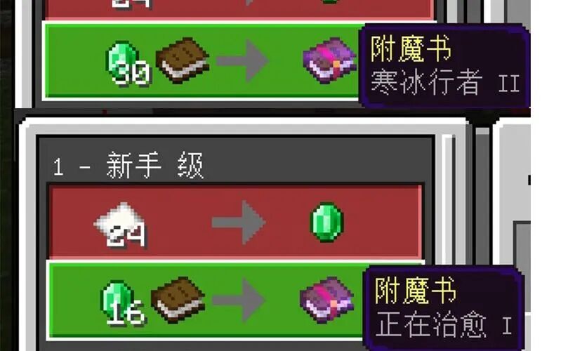 2.与村民中的图书管理员交易可以获得附魔书,另外在村庄的箱子,地牢神殿等地方的箱子里也有几率获得附魔书。
