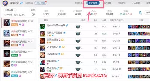 3、如果显示未找到该游戏,点击【历史战绩】即可查询到该用户的全部对局情况。
