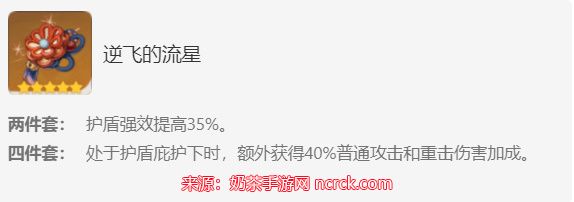 4、逆飞的流星:特殊玩法的特殊圣遗物,绑定钟离,其次属性拉跨,对比追忆少了10%重击加成,多了一个大招,但是想要刷逆飞的流星就要取刷岩本,而岩本里面是逆飞的流星和岩套,这两个圣遗物是目前版本几乎没人用的圣遗物,性价比极低。非常不推荐。