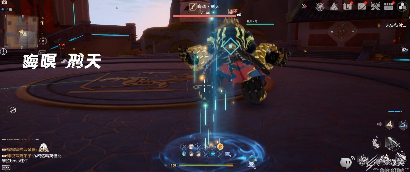 此外,晦暝·刑天这个世界BOSS一般打到还剩1.5管血量的时候就会直接判定玩家将其击败,不需要像其他世界BOSS那样完全击败。所以如果大家看到大世界喊打刑天的,最好是还剩3管或者4管血的时候就过去,因为喊还剩2管血的时候基本就是快打完了,可能等你传送到,就只能开个箱子了。