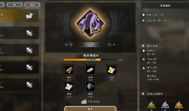 3、有了就可以去锻造、制衣,使用相应的材料, 获取装备配方且技术等级足够就能制作装备。