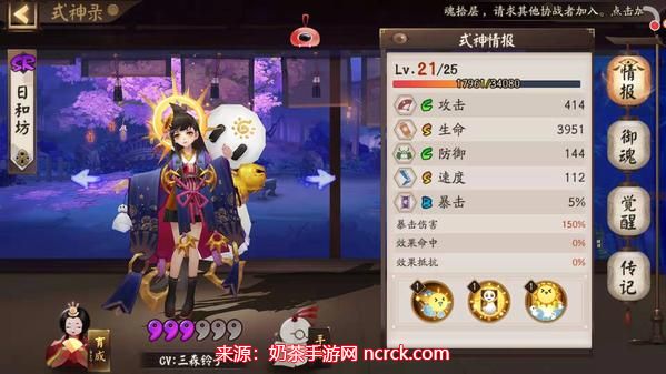 2、速/生/暴,地藏像(推荐指数:4颗星) 地藏像御魂适用于面对多段攻击的女式神,如针女花鸟、大天狗、犬神等。它提供了速度、生命和暴击效果,能够增加日和坊的生存能力和输出能力。