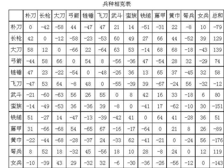 三国群英传2兵种相克表介绍