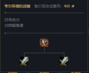 考尔菲德的战锤,是英雄联盟中的装备主要是提供攻击力、技能急速,主要适用于战士、ad等角色。
